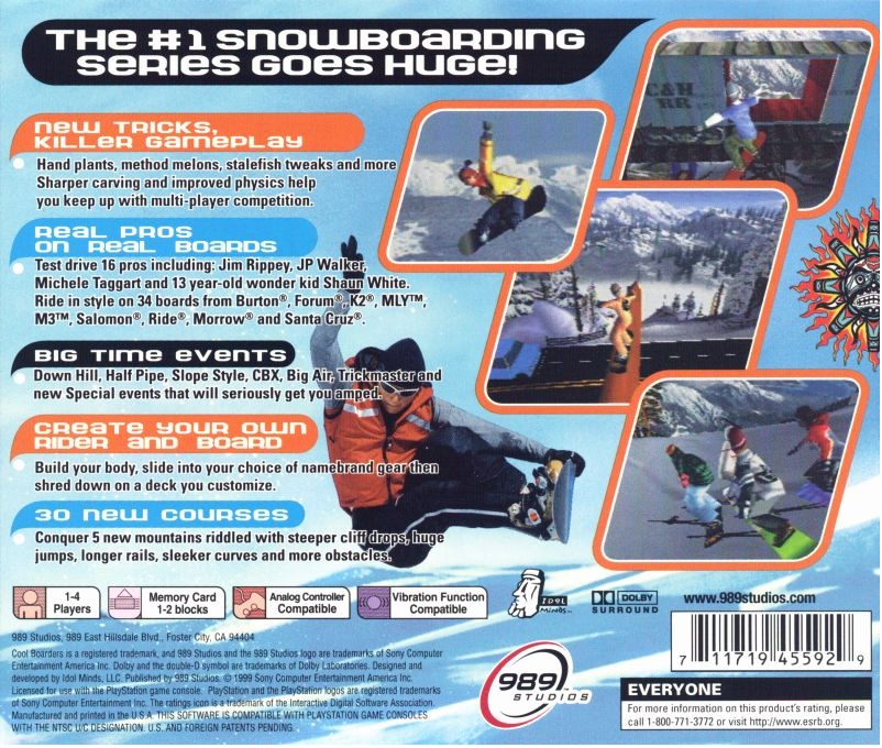 플스1 스노보드 게임의 명작 쿨보더스 시리즈의 4번째 작품입니다. 상당히 미려한 그래픽과 정신나간 숨겨진 케릭터의 등장, 그리고 다양한 트릭으로 많은 사랑을 받은 작품입니다.